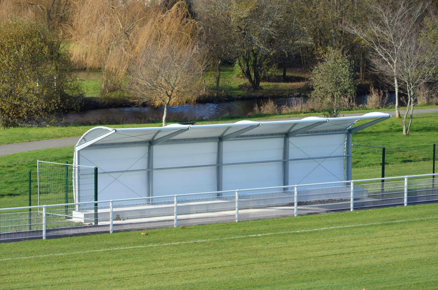 Une petite tribune pour abriter les supporters de clubs amateurs de foot ou de rugby